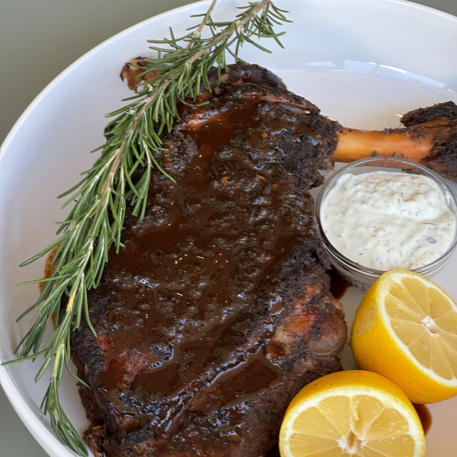 2.4kg whole bone-in free-range lamb shoulder, slow-cooked until tender and falling off the bone with wine, lemon, garlic and oregano.